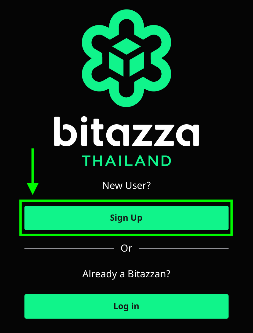 1. Click on 'Sign Up' on the first page of the Bitazza application.