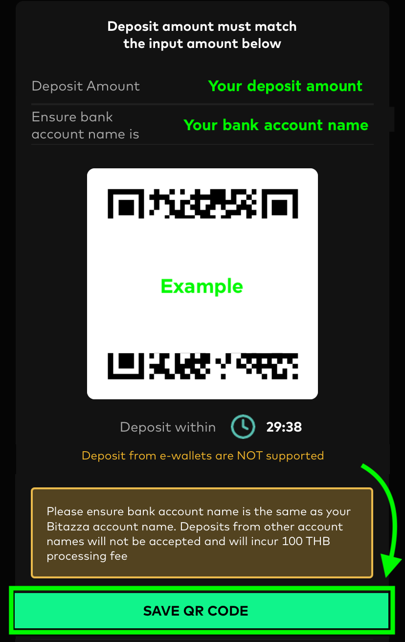 *Deposits can be made from any bank account that matches the name on your Bitazza account, and there is no need to add or change the account before depositing