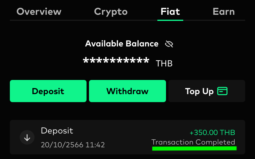 4. When the deposit is successful, the deposit status will display Transaction Completed.
