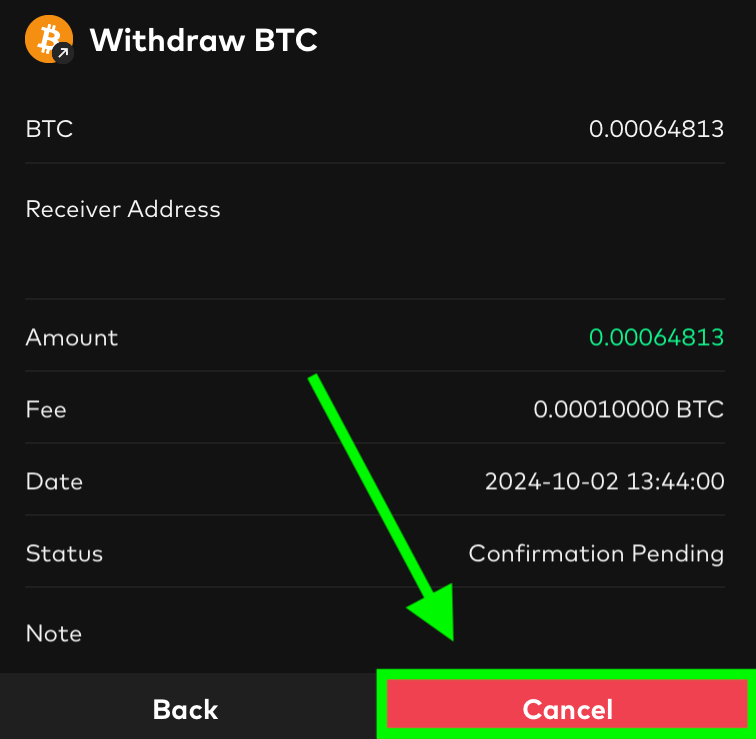 Once you have confirmed the withdrawal via email, you will not be able to cancel the transaction.