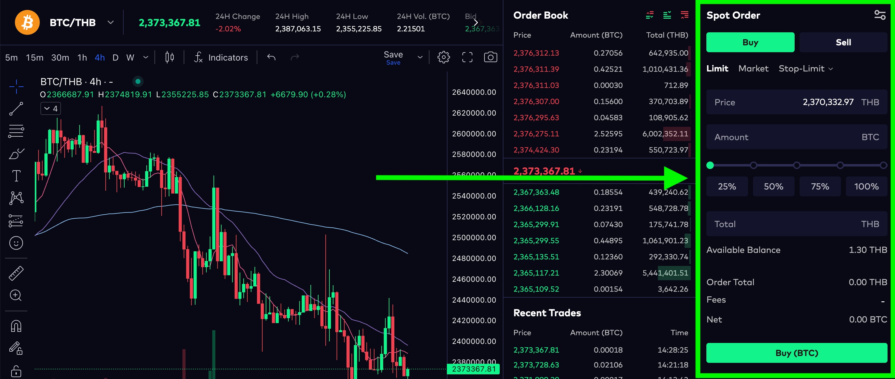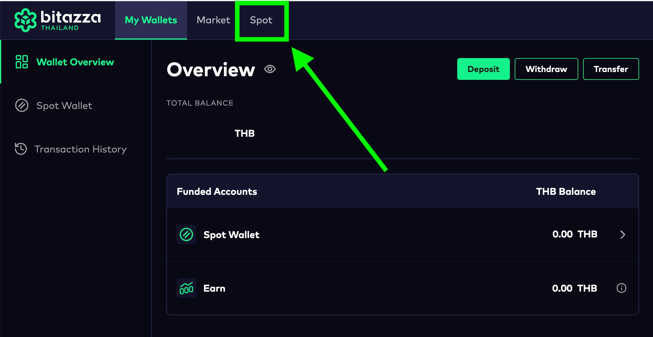1. กดที่แท็บ 'Spot' เพื่อเข้าสู่หน้าการซื้อขาย