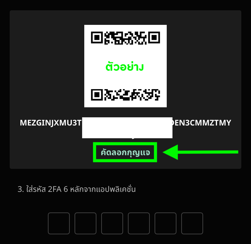 เพื่อความปลอดภัยบัญชีของคุณ อย่าเปิดเผย Key หรือ QR Code ในการติดตั้ง 2FA ของคุณแก่ผู้อื่น