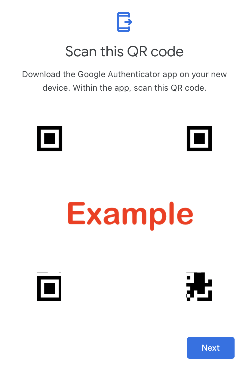 5. On your new device, download Google Authenticator, tap the '+' symbol, and scan the QR code to complete the 2FA transfer