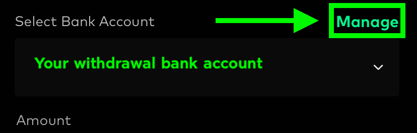 If you want to change the withdrawal bank account, you will need to add the new bank account information by clicking the ‘Manage’ button on the withdrawal page, you can add your desired withdrawal bank account information