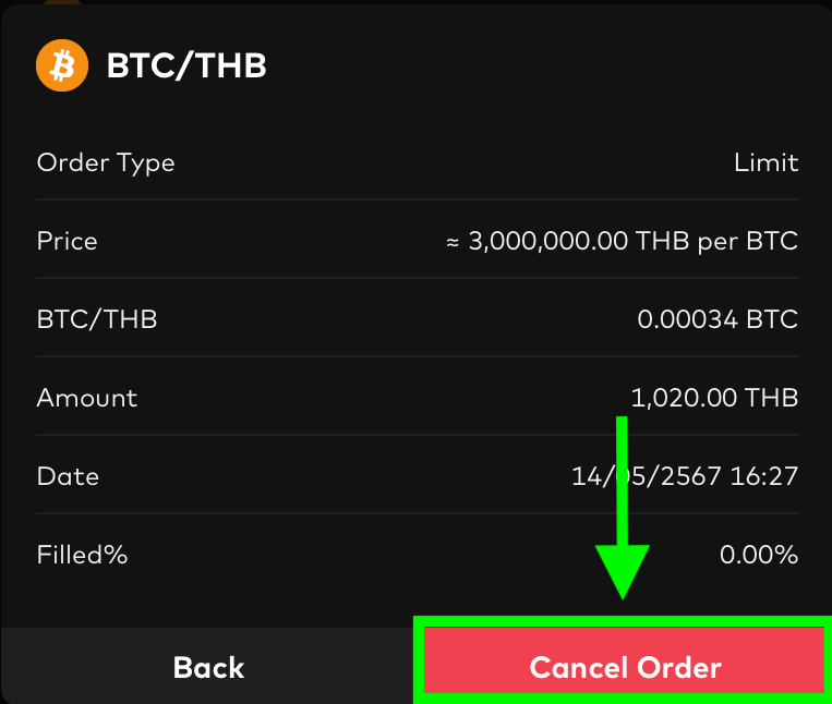 3. Click on the 'Cancel Order' button to complete the process