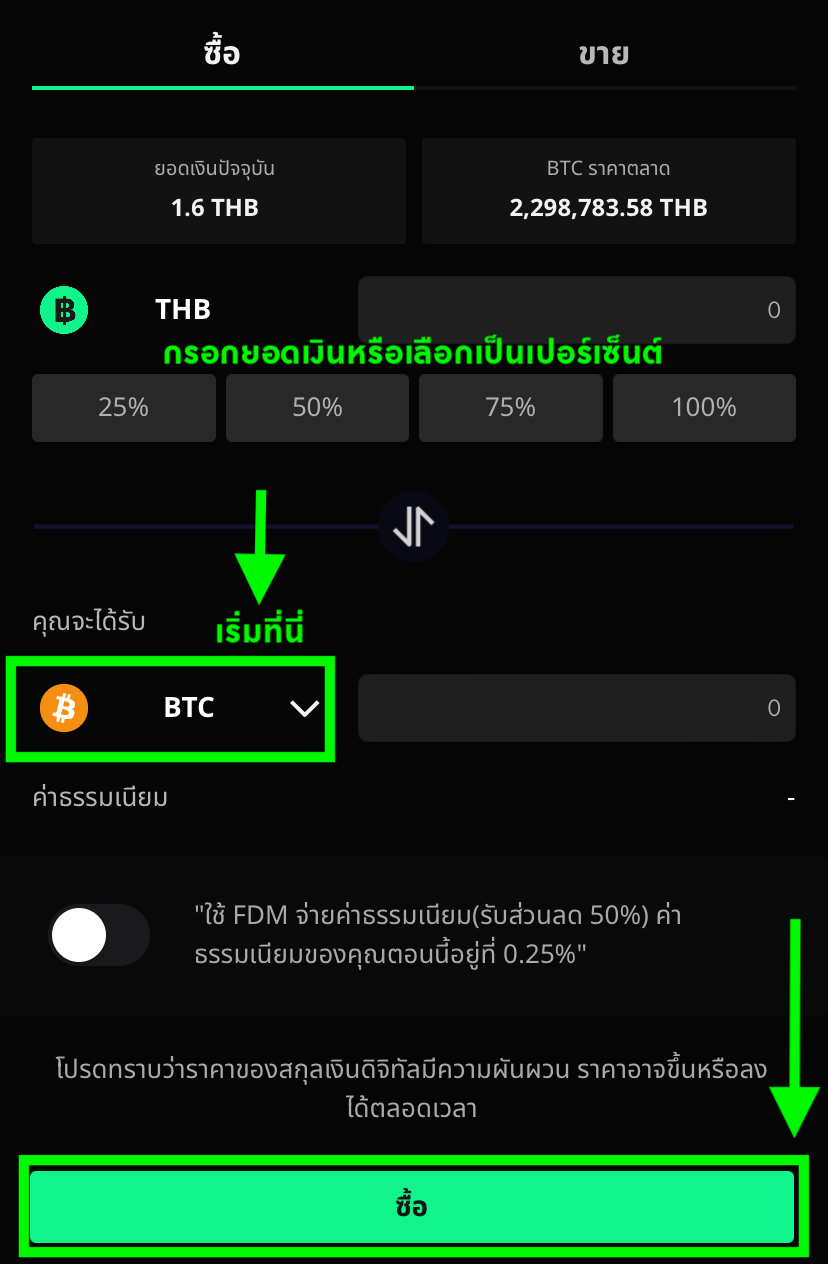 วิธีที่ 1 ซื้อขายจากเมนู ซื้อ/ขาย บนหน้าแรก (Dashboard) เพื่อให้คำสั่งซื้อขายของคุณถูกดำเนินการทันที