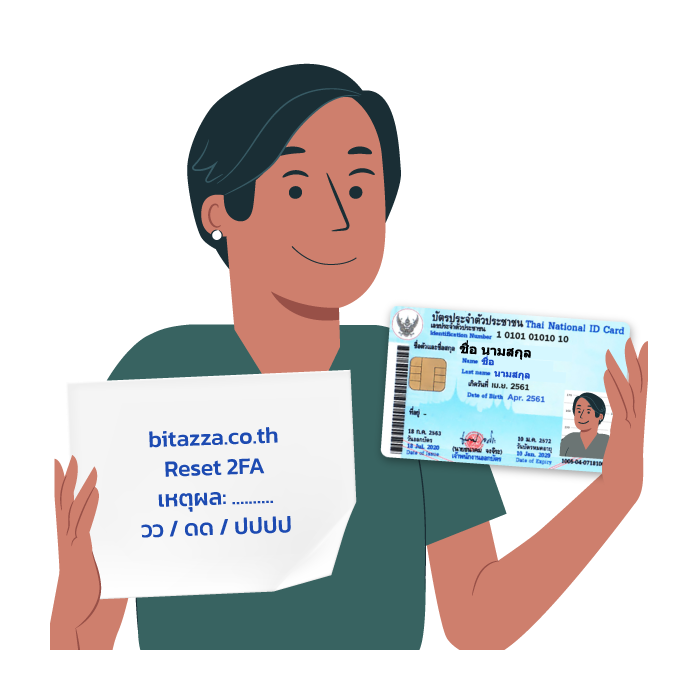 หากต้องการรีเซ็ตรหัสผ่าน 2FA กรุณาติดต่อเจ้าหน้าที่ลูกค้าสัมพันธ์และแนบรูปถ่ายเซลฟี โดยที่รูปถ่ายของคุณจะต้องประกอบไปด้วย