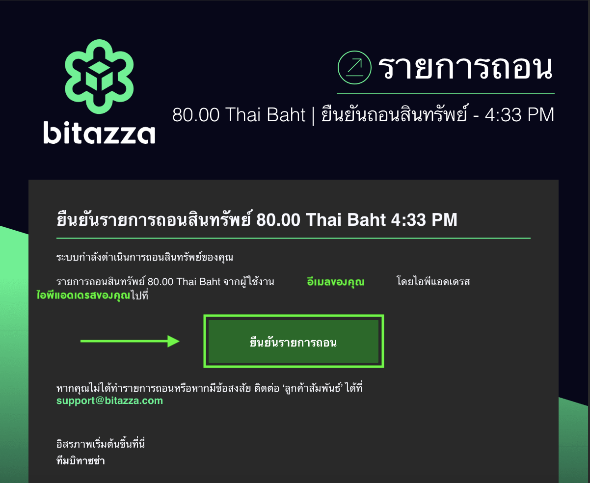 5. กด 'ยืนยันการถอน' ผ่านอีเมลเพื่อให้การถอนเงินเสร็จสิ้น